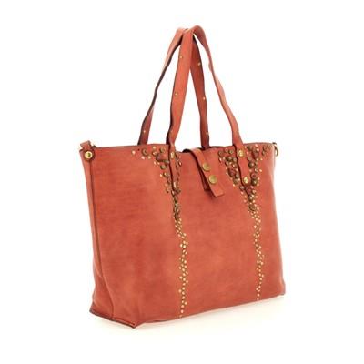 Bolso Shopping de CAMPOMAGGI C000290ND. Medidas 36/45x10x29 cm. Shopping "Bella" en piel de vacuno teñida en prenda con tachuelas, pedrería y piedras. Asas y Bandolera de piel al tono. Cierre con botón. 2 bolsillos interiores.