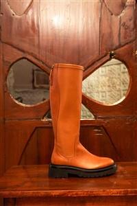 Bota de HOMERS 20751 en napa camel elástica muy suave. Altura plataforma 3,50 cm y tacón 5 cm. Altura real 1,50 cm. Cierre cremallera trasera, forro de piel, plantilla acolchada. Hecho en Menorca
