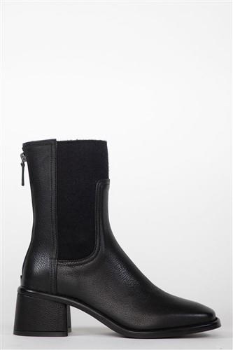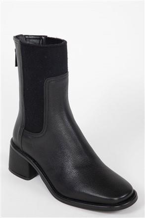Botines de piel Bufalino negro de HOMERS 21944. Gomas laterales y cierre de cremallera trasero. Tacón 4,5 cm, altura real 4 cm. Plantilla acolchada y suela antideslizante. Hecho en Menorca